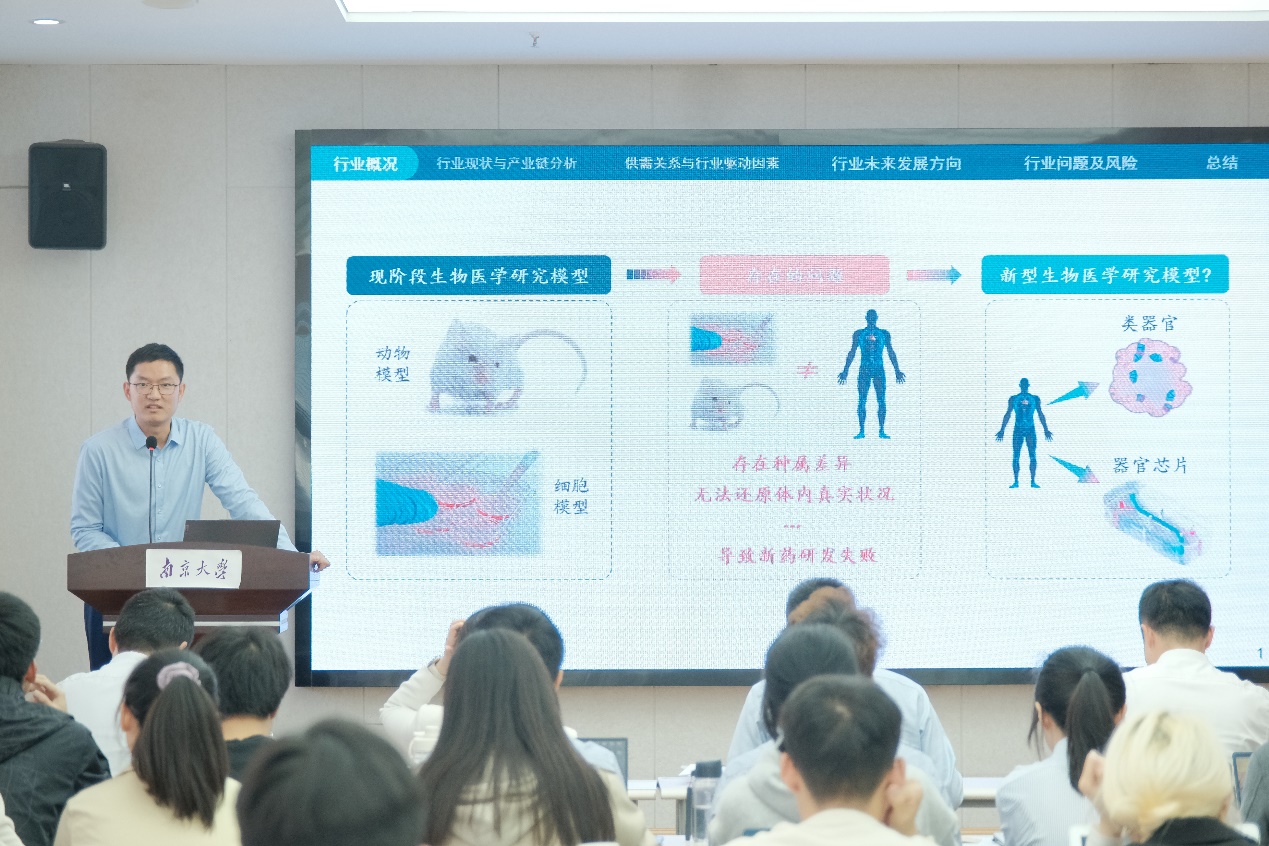 “类器官与器官芯片行研队”由太阳成城集团tyc234cc古天乐2022级博士生张礼堃担任队长,团队成员有太阳成城集团tyc234cc古天乐2022级硕士王园梦及商公司2022级本科生李傲雪。近年来,为了克服传统生物医学研究模型的不足,越来越多的科学家开始构建新型类器官和器官芯片模型,以期在体外复刻人体器官或组织。在这一大趋势的推动下,众多类器官及器官芯片企业应运而生,行业热度逐年增加。然而,这一行业尚处于早期阶段,缺乏统一的行业技术标准体系,在还原度等方面也未能完全满足需求。基于这一行业的广阔发展前景,该团队通过“行走课堂”参访了恒瑞医药、阿斯利康和欧莱雅等企业,在此过程中,团队成员深刻感受到类器官与器官芯片技术的巨大潜力,也让他们深切领悟到科技进步为人类健康带来的新希望和无限可能。张礼堃作为队长带领团队回顾总结了该行业的历史与现状、分析了其存在的问题和风险,并对该行业未来的发展方向进行了展望。