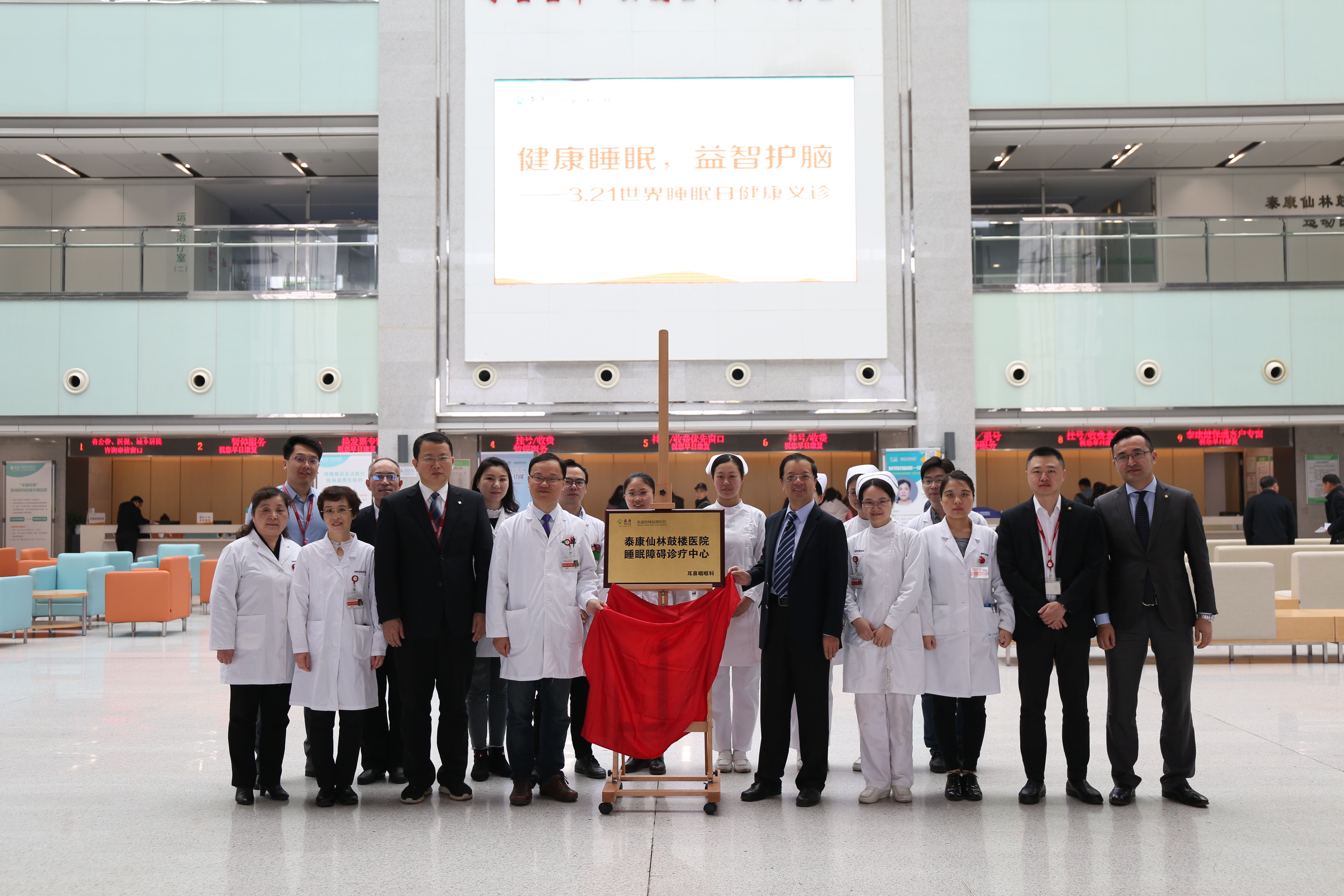 3月21日世界睡眠日,泰康仙林鼓楼医院耳鼻咽喉科睡眠障碍诊疗中心正式成立,即日起为有睡眠障碍人群提供从“睡眠监测—疾病诊断—多学科诊疗”的一站式医疗服务。经理李治平、副经理杨长青、护理总监李莞、耳鼻咽喉科副主任王旭平等出席揭牌仪式。