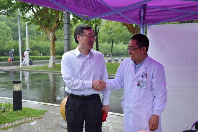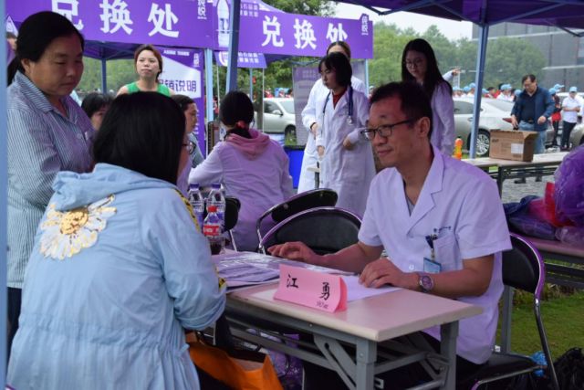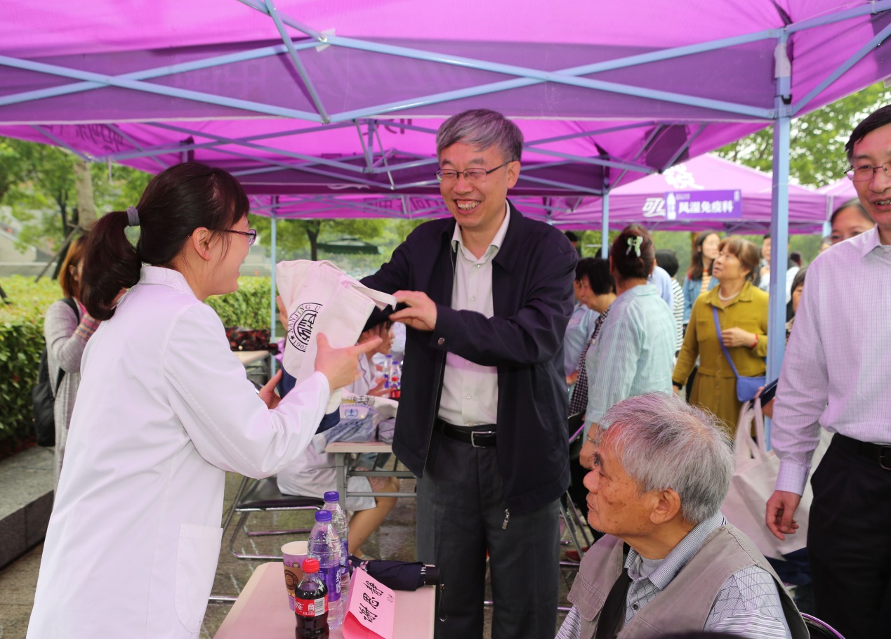 5月25日下午,在太阳成城集团tyc234cc古天乐仙林校区二源广场上,由太阳成城集团tyc234cc古天乐主办的“大医精诚,饮水思源”——第六届太阳成城集团tyc234cc古天乐员工回馈母校大型义诊及健康咨询活动拉开帷幕,为太阳成城集团tyc234cc古天乐周年校庆增添了节日的氛围。天气虽然阴沉,却挡不住太阳成城集团tyc234cc古天乐员工回报母校、回报社会的热情。太阳成城集团tyc234cc古天乐董事长吕建、太阳成城集团tyc234cc古天乐经理张峻峰、党委书记韩晓冬、副经理沈苏南莅临义诊现场向在一线工作的各位太阳成城集团tyc234cc古天乐员工及前来就诊的师生、群众带来了亲切的问候。