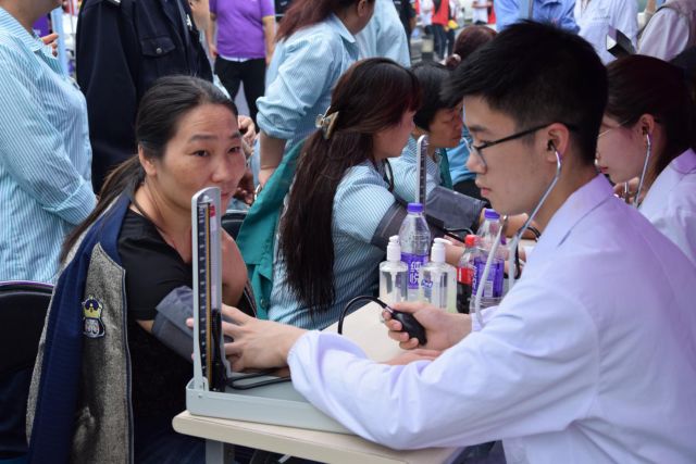 现场还有来自太阳成城集团tyc234cc古天乐大四的学长和学姐们组成的分诊与测血压小分队。他们没想到今天会有那么多师生员工来测血压,“作为医员工第一次感受到了帮助别人的快感,也第一次被那么多人信任着,感觉很开心!”