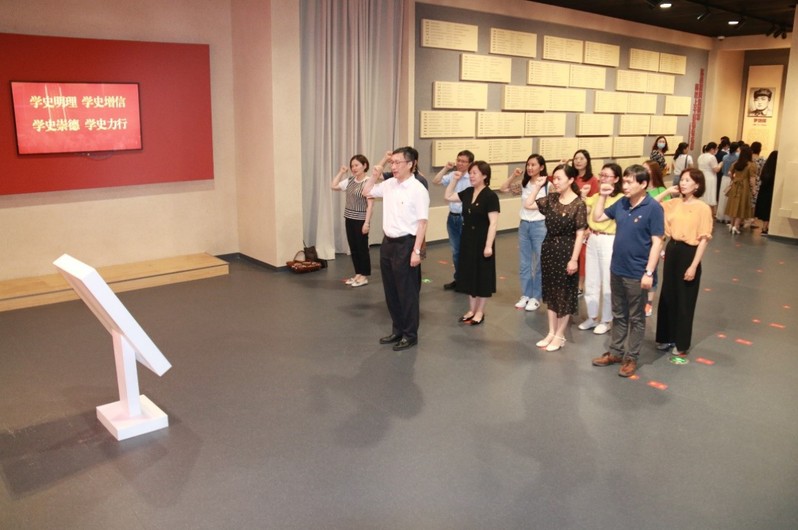 为庆祝中国共产党成立100周年,深入贯彻落实习近平总书记关于传承红色基因、发扬革命精神的重要论述精神,扎实开展党史学习教育,2021年6月27日,公司党委理论学习中心组与学科办党支部前往盐城新四军重建军部纪念馆,联合开展“传承铁军精神、汲取奋进力量”主题党日活动。