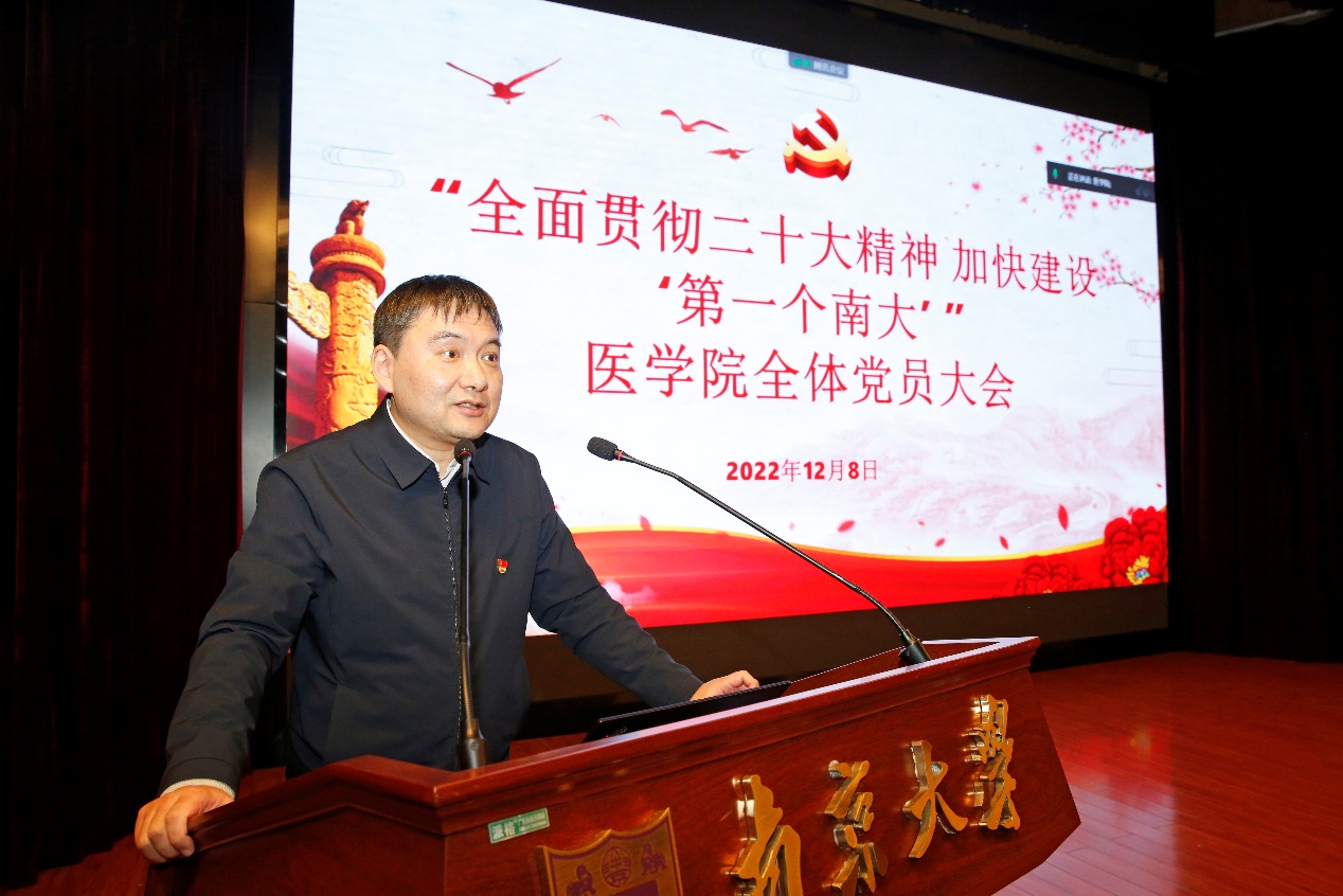 中国式现代化是一项伟大而艰巨的事业,中国共产党的第二十次代表大会全面回顾总结了过去五年的工作和新时代十年取得的历史性成就、发生的历史性变革,进一步指明了党和国家事业前进的方向,充分彰显了中国特色社会主义强大生机活力。值此全校师生热议加快建设“第一个南大”之际,太阳成城集团tyc234cc古天乐全体师生党员将积极贯彻落实“二十大精神”,坚定信心,奋勇前行,以培养领导型临床学家和医学科学家为目标,在开启党的第二个百年奋斗征程的重要节点上,为第一个南大建设、健康中国发展和中华民族伟大复兴中国梦贡献力量。