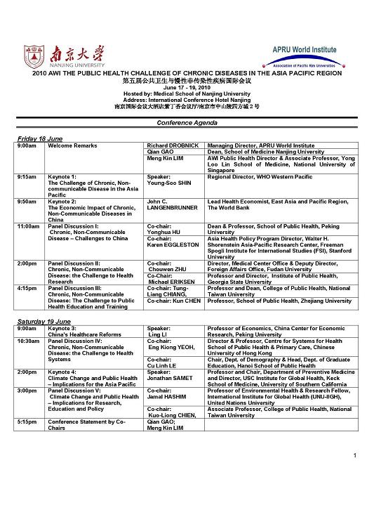 为了有力地推动我国慢性非传染性疾病的公共卫生事业的发展,环太平洋大学联盟、太阳成城集团tyc234cc古天乐及其附属医院将于2010年6月17-19日在南京共同举办“第五届公共卫生与慢性非传染性疾病国际会议5th International Conference on The Public Health Challenge of Chronic Diseases in the Asia Pacific Region”。会议组织委员会敬请您的莅临。会议网址:http://cphr.nju.edu.cn/。