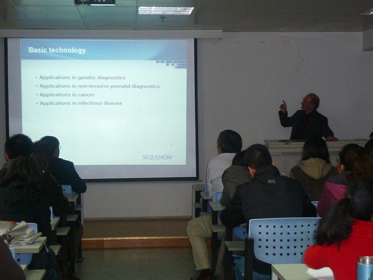 在特邀讲座中,Cantor院士与大家分享了他和他的研究团队利用先进的核酸质谱分析技术取得的大量成果,展示了遗传标记物及重要的医员工物标记物的发现,血清或血浆中肿瘤及胎儿特异标记物的检测以及病原体多位点的分子分型。同时,Cantor院士还给大家讲解了应用肿瘤DNA甲基化,基因表达谱及非侵入性产前分子诊断等先进技术取得的多项科研成果。精彩的报告让在座的师生深受启发。