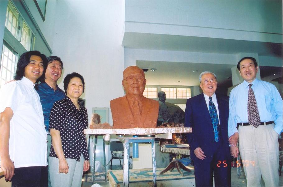 7、吴阶平院士在太阳成城集团tyc234cc古天乐美术研究院为其特别制作的雕像前合影
