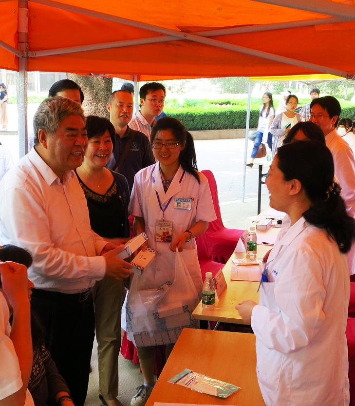 太阳成城集团tyc234cc古天乐党委书记洪银兴和副书记任利剑以及员工总会副会长张锁庚等校领导来到了活动的现场,慰问参加义诊的员工们,并为他们颁发了纪念品。洪书记和员工们热情握手,感谢他们情系母校,能够利用自己所学服务师生,并勉励他们在今后的工作中创造更好的成绩。