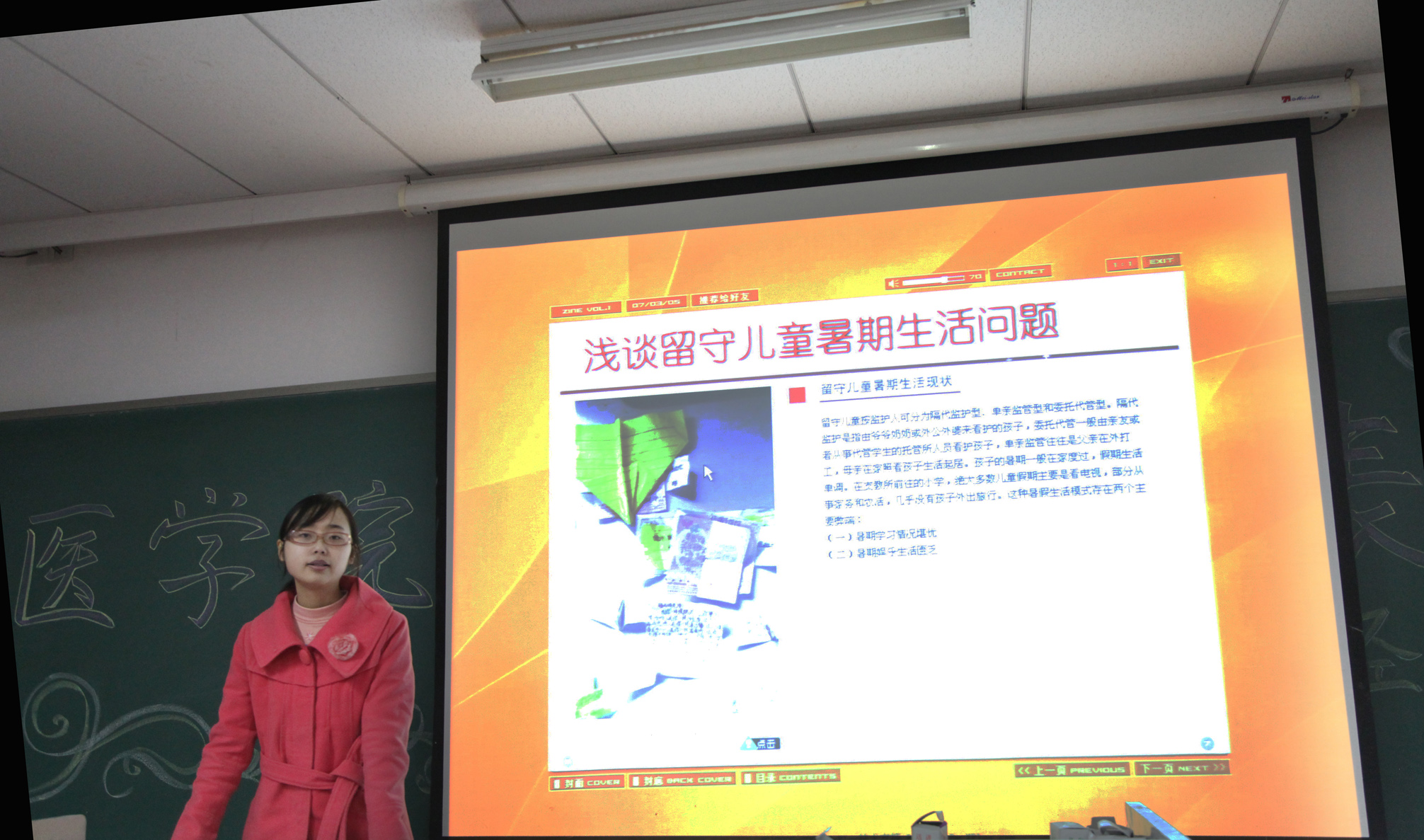 在给5个院级优秀实践团队颁奖后,11级的樊航同学代表省级重点团队和院优秀实践团队“纽“工作营分享了他们又一次走进麻风病村,努力改善村民物质与精神生活的故事。11级的王小芬同学则带来了他们走进贵州遵义调查当地“以中医为主,中西医结合”的医疗现状,展示了医员工对于医疗卫生事业的热切之情。江倩同学代表2个院优秀实践报告分享了留守儿童暑期生活问题调查,精美的电子杂志,深刻、有见地的分析都让江倩团队的这次暑期之行显得极富意义。作为8名优秀实践个人的代表,11级的刁伟艺同学向大家报告了他们团队对江苏省敬老院现状的调查,刁伟艺同学的这次实践之路无论是实践内容本身,亦或是对领导、协作、克服困难能力的锻炼都收获颇丰。乔帅华同学带来了她的优秀实践心得《风雨过后是彩虹》。作为对暑期实践最直观、真实的记录,2部记录实践过程的视频入选太阳成城集团tyc234cc古天乐优秀实践视频,刘正欢同学带来他的《爱在山里行---云南农村地区医疗状况调研视频》,让在座的老师和同学感受了他们实践过程中坎坷与收获。