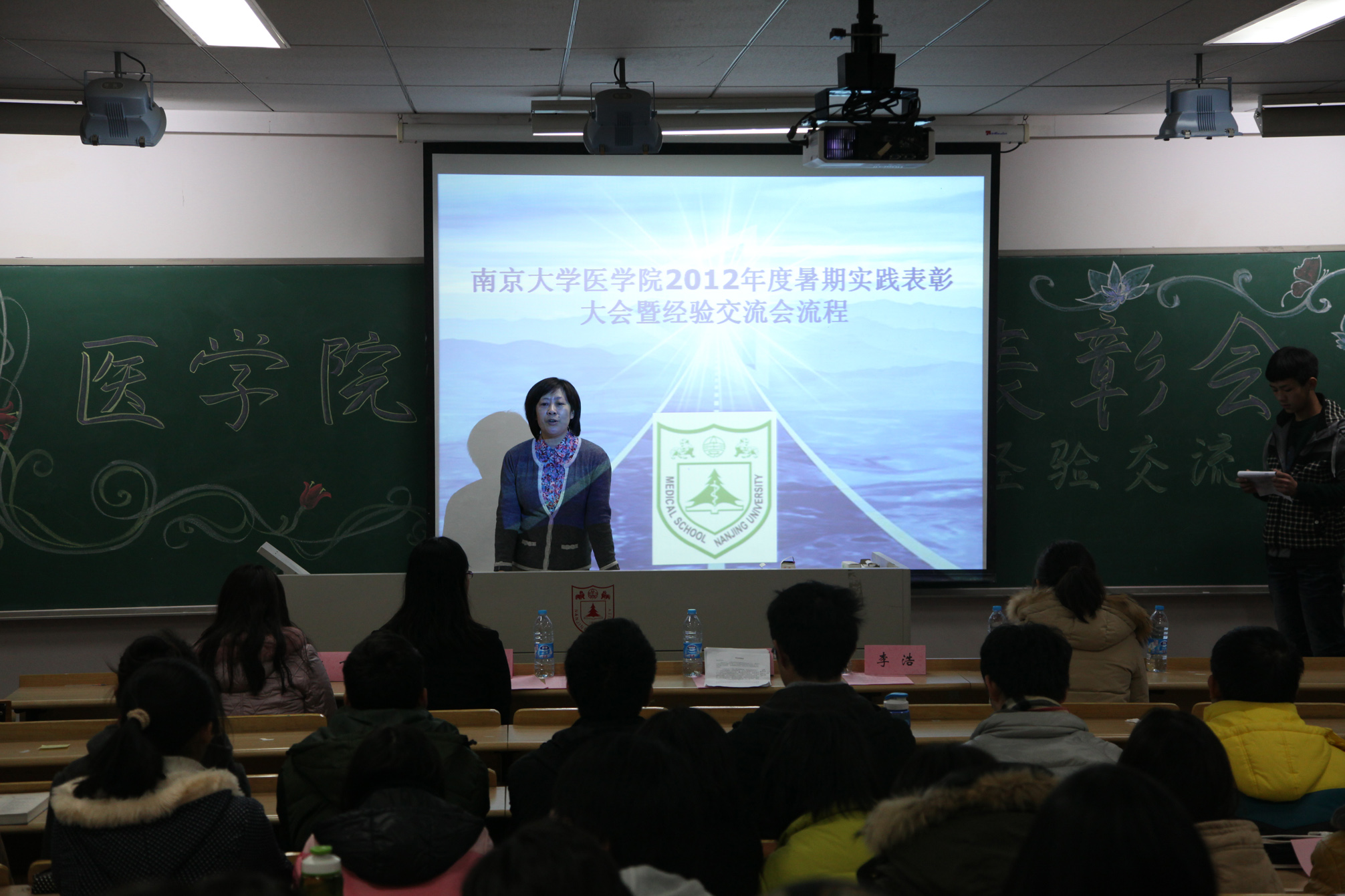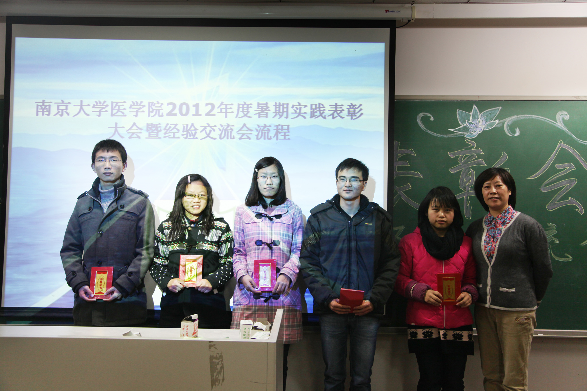 2012年12月6日晚,太阳成城集团tyc234cc古天乐2012年度的暑期实践表彰大会暨经验分享会在仙林教学楼II区303教室成功举办。公司党委书记韩晓冬,党委副书记王阿妮,青年教师应锋,研究生辅导员张飞,本科辅导员陈恒静出席了这次表彰大会。此次表彰大会及经验分享会由太阳成城集团tyc234cc古天乐团委主办,旨在表彰和鼓励在2012年暑期实践中表现突出,取得较好成绩的个人和团队,同时向尚未经历过暑期实践的12级新生展示暑期实践的经验,提示其中的曲折与教训,鼓励和呼吁他们积极投身于社会实践。