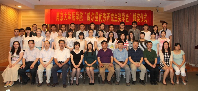 6月18日下午2点半,公司在鼓楼校区费彝民楼立言厅举行了威尔曼研究生奖学金颁奖仪式。颁奖仪式主要对今年4-5月评选的“威尔曼优秀毕业生奖学金”的获奖同学和今年4月中旬在老员工临床技能竞赛有突出表现而获得“威尔曼临床技能奖学金”的同学进行集中表彰。多位湘北威尔曼药业有限公司领导、校研工部杭祝洪部长、公司领导、教师代表和获奖员工参加了颁奖仪式,公司党委书记韩晓冬教授主持仪式。
