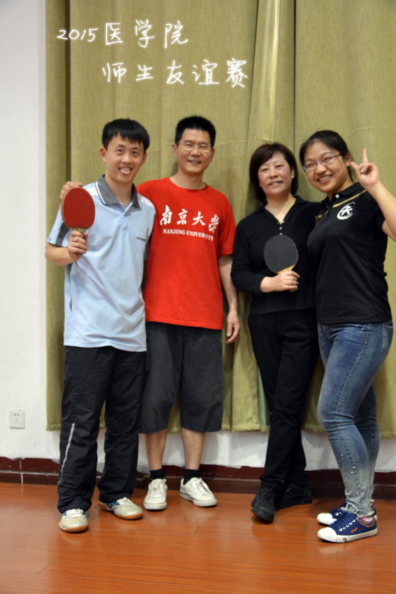 当实验室屏幕前分析数据的老师褪去一袭白大衣,当教室里传授知识的老师拿起手中的乒乓拍,当老师变为队友,当员工成为搭档,这是怎样的一番情景?趁着夏风还未曾灼热,2015年4月17日,在这样一个宁静的午后,在鼓楼校区体育馆,公司一年一度的乒乓球师生友谊赛火热进行中。