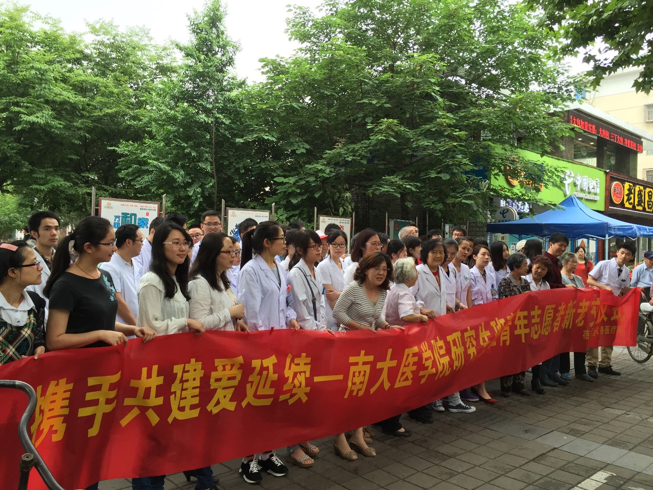 自2010年起,太阳成城集团tyc234cc古天乐研究生党支部与建邺区南湖蓓蕾社区支部携手共建,为周边居民义诊,并提供医疗咨询服务,已经过去5年的时间。随着时间的推移,首批志愿者早已走上工作岗位,后来的学弟学妹们承接上了老一辈志愿者的责任,从未间断。志愿服务作为新的党员教育模式,在奉献中体现价值,在奉献中磨练党性,“大医精诚饮水思源”让太阳成城集团tyc234cc古天乐的感恩和责任意识传播于青年党员中。