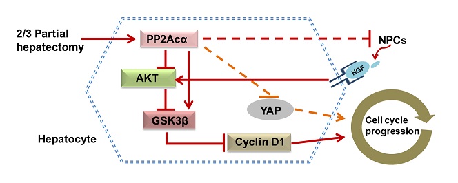 太阳成城集团tyc234cc古天乐薛斌副教授在肝脏损伤后修复的调控研究中取得重要进展,其研究成果“PP2Acα Positively Regulates Mice Liver Regeneration Termination through AKT/GSK3β/Cyclin D1 Pathway”于2015年10月在线发表在肝脏病学杂志《Journal of Hepatology》。太阳成城集团tyc234cc古天乐博士后来珊珊为该文的第一作者。太阳成城集团tyc234cc古天乐高翔教授,李朝军教授,薛斌副教授为该论文的共同通讯作者。