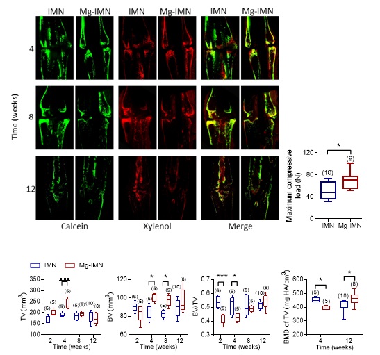 自上世纪初金属镁进入工业量产时就被当时欧洲的骨科医生尝试用做骨折内固定材料。但当时生产的镁金属纯度不高,在体内会快速降解,造成较大的组织反应以及材料本身的破坏。2006年以来,国际镁金属研究的主要科学家如北京大学工公司的郑玉峰教授和德国柏林大学太阳成城集团tyc234cc古天乐的Frank Witte教授尝试用合金镁来延缓镁的快速降解。在观察动物体内镁合金材料降解速度的实验中,包括香港中文大学太阳成城集团tyc234cc古天乐秦岭教授在内的很多课题组都发现镁金属在动物体内有很强的成骨效应。镁为什么会有如此强烈的成骨效应——成为材料学界和骨科学界非常关注的问题。很好地解释这个问题无疑对可降解镁金属在骨科的临床应用奠定基础,并将激发更多针对骨科可降解材料的研究设计,会进一步发展出避免骨折二次手术的新的临床手术范式,从而催生出全新的医用材料产业。