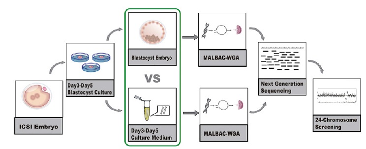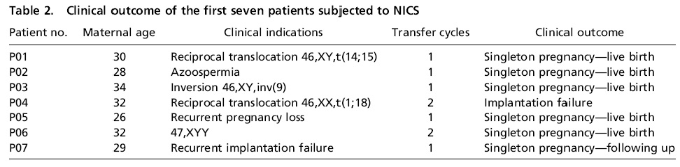 胚胎植入前遗传学筛查(PGS),是在植入着床之前对胚胎进行活检,然后对活检组织进行染色体数目和结构异常检测,分析胚胎是否有遗传物质异常,从而挑选正常的胚胎植入子宫,提高患者的临床妊娠率。这是目前国际上最常用的胚胎染色体筛查技术。但因为这种方法对胚胎有创,对子代健康具有潜在影响。实现胚胎无创诊断是全球生殖医学人一直在追求的目标。NICS技术通过检测囊胚培养液中极微量的游离DNA的整倍体性,来全真反映胚胎的质量。以整个胚胎的整倍体筛查结果为金标准,NICS技术检测阳性预示值为78.9%,而阴性预示值则达到91.3%。截至文章发表,临床上已有7位患者移植了采用NICS技术筛查得到的整倍体胚胎,其中5位已成功分娩健康整倍体新生儿,另1位为持续妊娠。仅有1位患者胚胎植入失败。