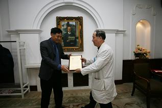 3月22日,鼓楼医院丁义涛经理向美国加拿大基督会、美国联合基督教会世界事工部东亚太平洋地区执行干事朱晓陵博士颁发了“鼓医友谊奖”奖牌,朱晓陵博士也成为历史上第一位“鼓医友谊奖”的获得者。