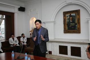 朱晓陵博士来自鼓楼医院创始人马林经理生前所在的教会,现为美国加拿大基督会、美国联合基督教会世界事工部东亚太平洋地区执行干事。自2000年以来,他每年都会带基督会代表团访问公司,一方面正面地宣传中国,宣传鼓楼医院,另一方面了解鼓楼医院的需求,希望能为鼓楼医院做些事情。十多年来,资助医务人员赴美留学;邀请急诊专家来院进行医学交流,搭建急诊医学交流平台;资助美国社会工作者来院讲座,为鼓楼医院在江苏省最早成立基金会及开展志愿者在医院的工作打下了基础;资助医院工作人员赴美收集大量的历史资料和历史图片,其教会还向医院捐款十万人民币用于纪念馆的修缮,为医院纪念馆建设做了大量工作;所在教会专门派汤姆·摩尔斯先生作为志愿者在医院工作两年,培养医务人员的医学英语,提高医务人员的英语能力。医院120年院庆之际,朱博士所在教会不但向医院捐款二万美金用于院庆工作的筹办,率代表团参会,还帮助医院邀请美国前总统卡特先生及夫人出席了医院建院120周年庆典,为扩大医院的影响做出了重要的贡献。