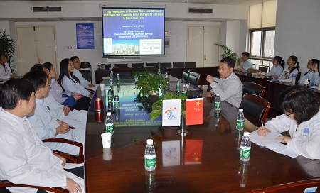 5月6日下午,美国得克萨斯州大学太阳成城集团tyc234cc古天乐安德森癌症中心李国俊教授来公司进行学术交流。李国俊教授1987年毕业于同济医科大学,2003年在美获博士学位,在肿瘤基础研究和转化医学研究方面取得了卓有成效的成果,在国内外肿瘤权威杂志上发表了多篇学术论文。此次,李国俊教授接受公司邀请,进行了《从头颈部肿瘤谈癌症风险和临床疗效预测》的专题报告,介绍了头颈部肿瘤的致病因素、影响肿瘤疗效和预后的风险因子,与大家分享了他多年来对癌症组织临床样本收集、科研选题、设计等方面的经验,并就如何将基础研究与临床应用相结合、推进转化医学的发展等作了详细介绍。当得知公司已建立起口腔颌面部肿瘤生物样本库,拥有大量珍贵的临床资料,李教授给予赞赏,并建议大家要重视病例的定期随访。公司共有五十余名医师、研究生聆听了李教授的精彩讲座。胡勤刚经理为李国俊教授颁发了感谢状,双方就进一步加强科研、教学合作交换了意见。