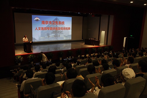 在两个小时的时间里,丁义涛经理密切结合医院实际,从人文医院的建设背景、创新公立医院改革模式、人才培养模式、人文医院管理模式等方面介绍了鼓楼医院近十年来在人文医院建设方面所取得的成效,分享了许多宝贵的经验。一张张珍贵的老照片、一串串鲜活的数据和一个个生动的事例,深入浅出,精彩纷呈的讲授,让与会者受益匪浅。讲座结束后,所有参会人员还分组参观了鼓楼医院历史纪念馆和新大楼,进行现场观摩。