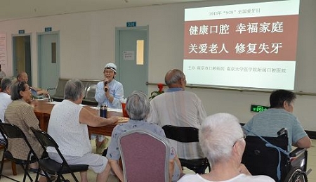 预防口腔科龚玲主任首先向鼓楼区南山园老年人服务中心的老人们宣讲了老年口腔疾病的发病特点、老年口腔健康对全身疾病的影响、老年口腔健康的日常维护,提醒老人们要重视自己的口腔健康,做到预防为主,早发现、早治疗,及时解除口腔病痛和隐患。