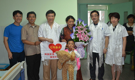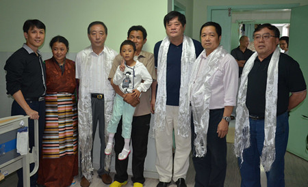 7月4日,市民族宗教局副局长朱黎黄、市残联工作人员和胡勤刚经理、王磊书记、周楠副书记看望了在公司三病区就诊的5岁藏族女孩伦珠曲央,祝愿她早日康复迎接美丽人生,并向倾力救治小伦珠的医护人员和热心人士表达诚挚感谢。