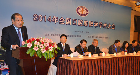11月7日~9日,由中华口腔医学会口腔麻醉学专业委员会主办,太阳成城集团tyc234cc古天乐附属口腔医院承办的2014年全国口腔麻醉学学术大会在宁召开。中华口腔医学会会长王兴教授、中华口腔医学会口腔麻醉学专业委员会主任委员徐礼鲜教授以及江苏省口腔医学会会长、太阳成城集团tyc234cc古天乐附属口腔医院经理胡勤刚教授分别致辞。中华口腔医学会口腔麻醉学专业委员会前任主任委员朱也森教授、候任主任委员姜虹教授以及副主任委员刘可斌教授、刘瑞昌教授出席会议并在主席台就坐。开幕式由中华口腔医学会口腔麻醉学专业委员会副主任委员、太阳成城集团tyc234cc古天乐附属口腔医院李刚教授主持。大会参会代表205人,其中台湾代表10人。
