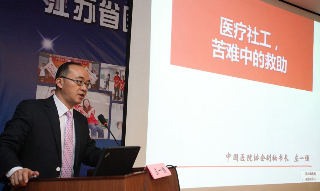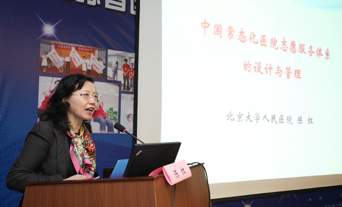 开幕式结束后,中国医院协会副会长陈红、北大人民医公司党委书记陈红作了题为《中国常态化医院志愿服务体系的设计与管理》的报告。在报告中,陈红书记以北大人民医院丰富的医务社会工作和志愿服务工作经验为基础,与在场参会人员分享了北大人民医院志愿服务工作从无到有、从弱到强,逐渐步入正轨的发展过程,以及已经形成的较为完善的志愿服务体系。中国医院协会副秘书长庄一强以《医疗社工,苦难中的救助》为题,从医学价值的再思考出发,强调了医学 “科学”和“人文”的双重属性,介绍了医疗社工产生的历史背景,以及其在现代医疗和社会保障中的重要作用。
