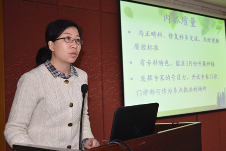 胡勤刚经理首先对2014年医院运行情况以及医教研等方面的情况作了回顾,深入分析了目前所面临的问题、机遇和挑战,重点谈了2015年工作思路。他指出,今年要以“建设国内一流、国际知名口腔专科医院”为目标,以团队建设和人才队伍建设为抓手,按照等级医院建设要求,以问题为导向,持续改进,深化改革,积极推进医院标准化、程序化、精细化和民主科学化管理,更加注重患者的感受和满意度,全面提升医教研整体水平,把推进健康服务和科技名城建设的各项举措落到实处。