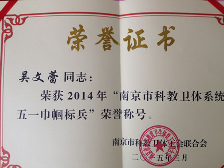 为大力弘扬劳模精神、弘扬先进典型,进一步激发科教卫体系统广大女职工创业创新创优、争先领先率先的热情,近日,南京市科教卫体工会联合会授予公司预防口腔科“五一巾帼标兵岗” 、授予高级专家诊疗科吴文蕾主任“五一巾帼标兵”荣誉称号。