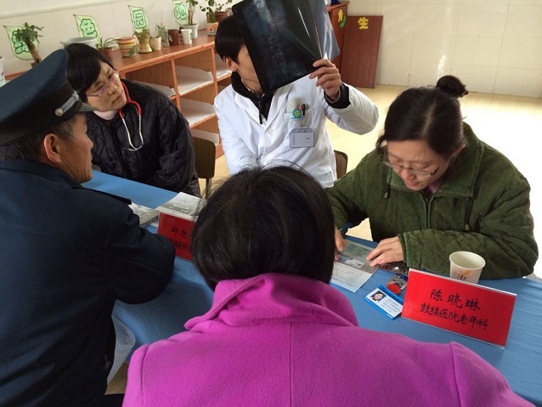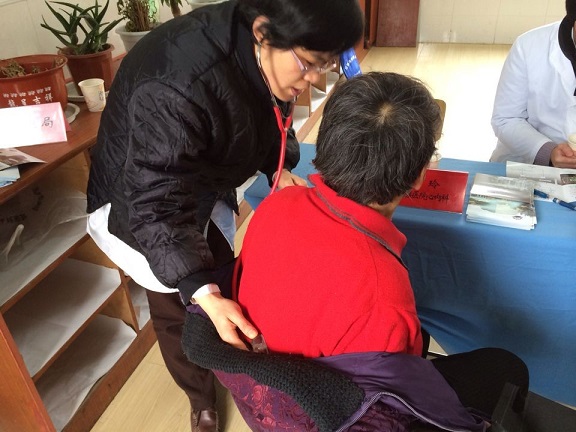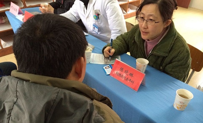 心内科副主任医师高玲、骨科副主任医师邱旭升、老年医学科副主任医师陈晓琳一早就来到了活动地点,为当地群众答疑解惑,宣讲健康知识。