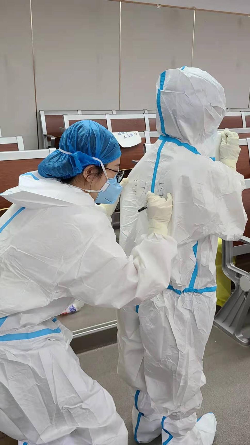 能够前往一线,同学们最想表达的是荣幸。“2020年疫情最严重的时候,老师们身先士卒,把我们挡在身后”,博士生吴梓瑜表示,“我们也并不总是被保护的那群人,也能有一份光发一份热。今天,我们做到了!”工作期间,防护服内炙热难耐,反反复复地重复着,不停地说“来,抬起头,张大嘴,啊……”,博士生吕中阳直言,但是听到市民说一声“谢谢”的时候,感觉所有的疲惫都烟消云散,身为医员工的自豪感油然而生。