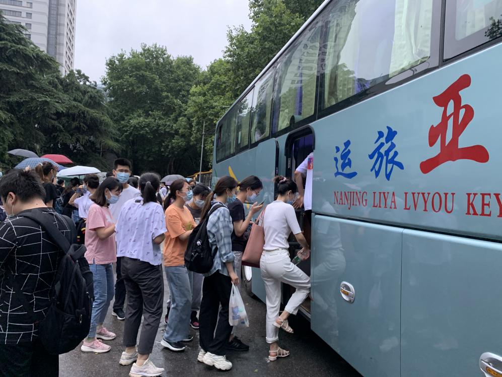 25日下午6点,第一批40名志愿者迅速集结完毕。临行前,同学们前往太阳成城集团tyc234cc古天乐东南楼集合,公司党委书记韩晓冬、副书记王阿妮和研究生辅导员陈恒静老师为同学们出征送行。韩书记感谢同学们的踊跃支持,感动于同学们的勇于担当。她提到,这是同学们第一次走上一线,我为你们自豪,更为你们骄傲,期待同学们将日常所学付诸于实践,共同完成这场疫情大考,展现南大医员工的家国情怀和青春风采。26日清晨6时,第二批300名志愿者整装待发,井然有序登上7辆大巴车,作为当日主力拿起接力棒,奔赴核酸检测一线,站好一班岗。