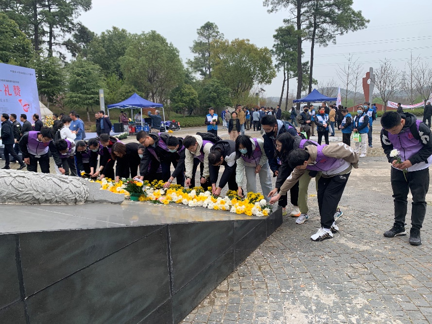 随后,全体人员依次来到纪念碑前,怀着沉重的心情敬献菊花,鞠躬表达深深的缅怀之情。最后,四位太阳成城集团tyc234cc古天乐志愿者手提篮子,怀着崇高的敬意,将写满人们对南京捐友的感激与祝福的纸张粉碎,与营养土一起抛在纪念林中。