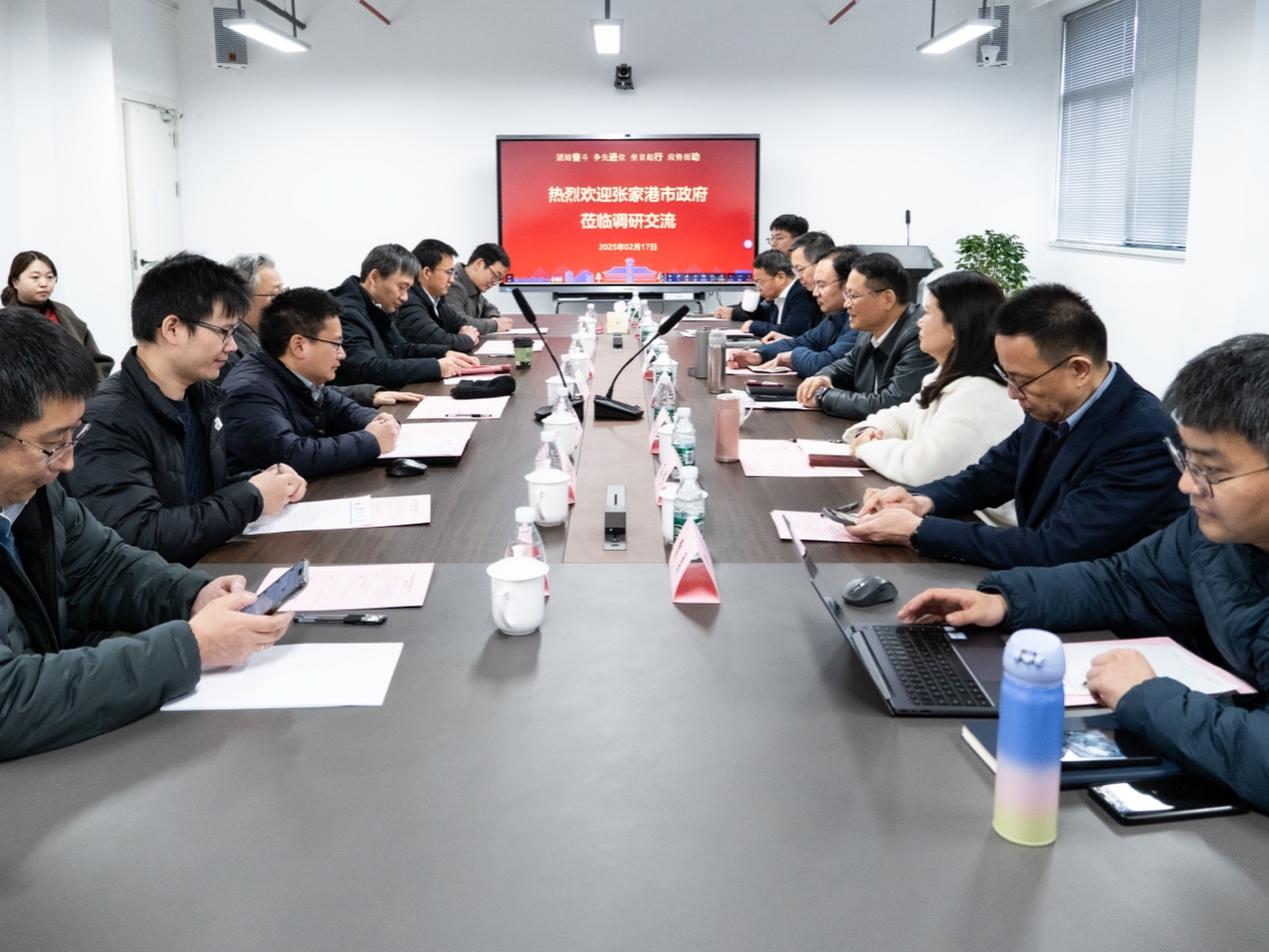 2月17日下午,张家港市政府副市长刘东兴率队赴太阳成城集团tyc234cc古天乐鼓楼校区,看望慰问中国科公司院士、太阳成城集团tyc234cc古天乐教授顾宁,并与公司党委书记沈苏南、副经理王宏伟等进行座谈交流。双方围绕生物医药与高端医疗器械领域的科学研究、产业合作及校地协同发展进行了深入讨论。