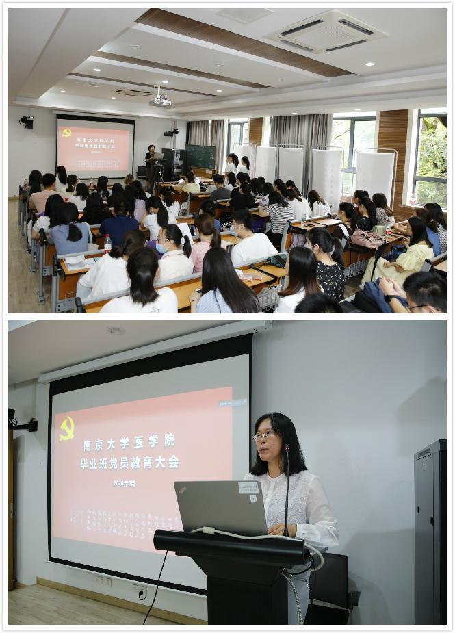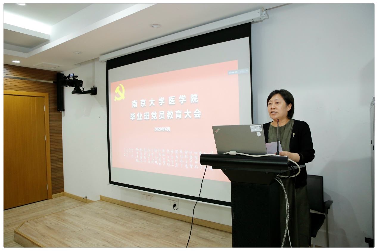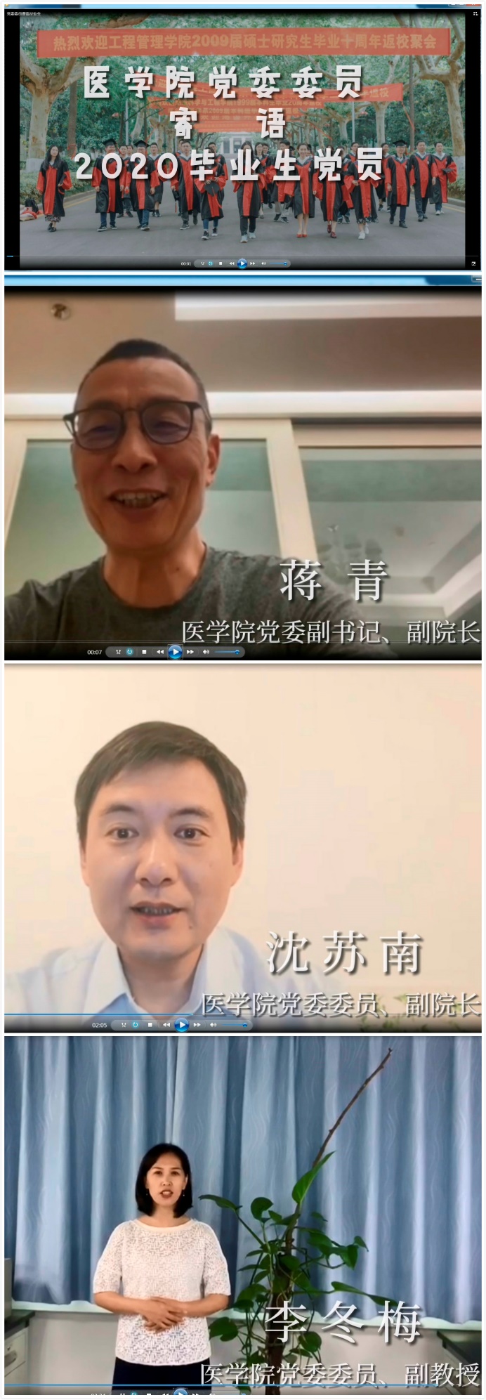 之后,以视频形式播放了三位公司党委委员给予同学们的寄语与期待。蒋青老师以“坚持医学的正义与本真”期冀同学们坚定医学信念,继续医学钻研,终身学习,通过踏实、勤奋的工作获得美好生活;沈苏南老师希望大家今后能够在国际上发出中国声音,在社会上发出南大声音,在专业上发出医学声音;李冬梅老师寄语同学们,永存爱国之心、爱党之心和进取之心。