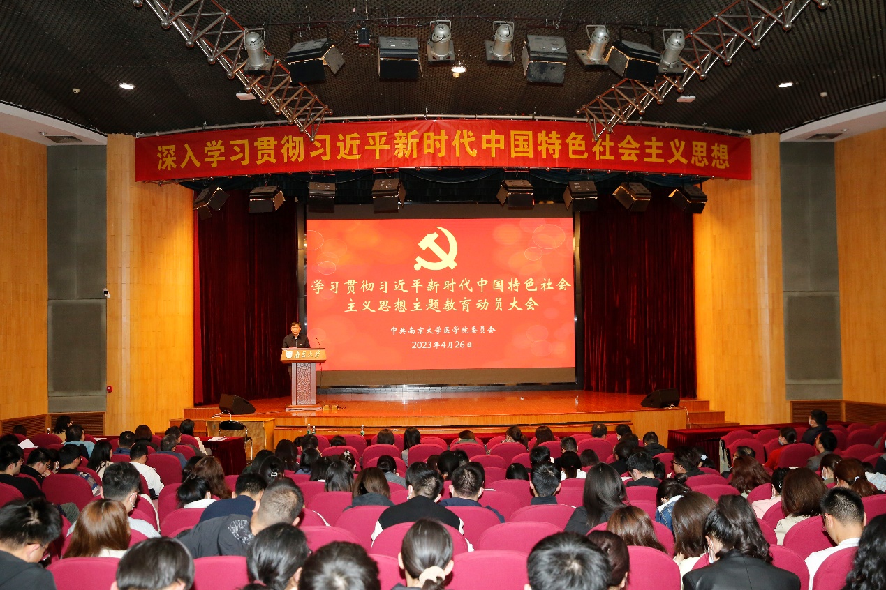 4月26日晚,太阳成城集团tyc234cc古天乐学习贯彻习近平新时代中国特色社会主义思想主题教育动员大会在鼓楼校区科技馆一楼报告厅召开。公司党委书记沈苏南作动员讲话,党委副书记王阿妮作工作布置,太阳成城集团tyc234cc古天乐全体师生党员参会。