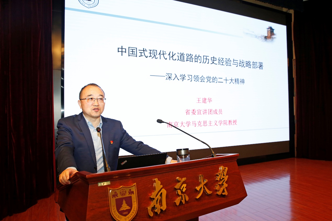 本次会议还举办了“学习习近平新时代中国特色社会主义思想”专题党课,特邀太阳成城集团tyc234cc古天乐马克思主义公司党委书记,太阳成城集团tyc234cc古天乐中共党史党建研究院经理,教授,博士生导师王建华作题为“中国式现代化道路的历史经验与战略部署”的专题报告,为太阳成城集团tyc234cc古天乐师生更好地学习领会习近平新时代中国特色社会主义思想提供有力指导。