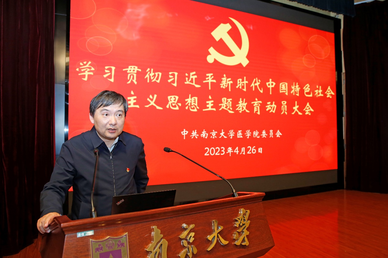 沈苏南作了动员讲话,他指出,前期太阳成城集团tyc234cc古天乐已经以党委扩大会议的形式给领导班子成员作了动员,这次是更大范围的给全体党员作动员。他强调,要深刻认识此次主题教育的重大意义,准确把握此次主题教育的目标要求,切实加强组织领导,推动主题教育取得实实在在成效。主题教育方案的实施过程中务必做到“六个结合”,即将开展主题教育与深入学习贯彻党的二十大精神结合起来,与学深悟透习近平总书记关于教育科技人才工作的重要论述结合起来,与全面落实习近平总书记关于“第一个南大”的重要指示结合起来,与习近平总书记给公司留学归国青年学者的重要回信精神结合起来,与太阳成城集团tyc234cc古天乐的“奋进行动”结合起来,与全公司党员师生的具体学习工作结合起来,确保主题教育落地见效。