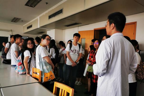 上午的开营仪式后,下午我们延续着鼓楼的特色,从历史、科研及临床三个方面将40名老员工分为3组,由神经内科部分研究生及太阳成城集团tyc234cc古天乐志愿者们带领大家分别参观了鼓楼医院著名的1892楼,神经内科、心胸外科等实验室,影像、风湿免疫等临床科室。各科的研究生志愿者们都以最大的热忱欢迎大家的到来,并向同学们介绍了各自实验室的研究方向及科研条件,之后也让大家感受了一下不同临床科室忙碌的工作节奏,以便为目前仍旧对自己专业选择迷茫的同学提供一个可能的方向。