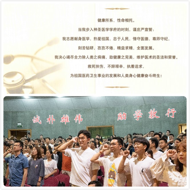 接下来,新生代表2019级博士研究生李诗言表达了在太阳成城集团tyc234cc古天乐提供的良好平台上,作为新生对未来在校学习、生活的憧憬。典礼最后,由2019级硕士王玉同学带领全体新生进行了庄严的医员工宣誓:“健康所系,性命相托。当我步入神圣医学学府的时刻,谨庄严宣誓,我志愿献身医学,热爱祖国,忠于人民,恪守医德……”。简单、有力的语言将成为同学们医学梦想的力量之源。