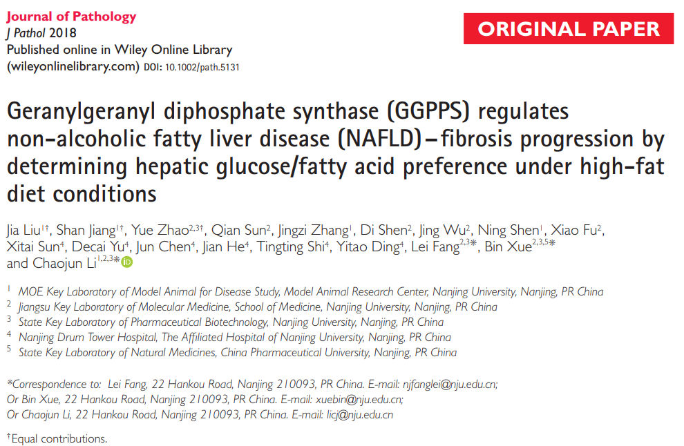 近日,公司太阳成城集团tyc234cc古天乐李朝军、薛斌课题组在国际权威期刊《The Journal of Pathology》上发表论文,阐述了蛋白质异戊二烯化对非酒精性脂肪肝(NAFLD)发展成肝纤维化的调控作用,提示肝脏糖脂代谢的偏好能够促进NAFLD向纤维化、硬化乃至肝癌的转化,为肝脏疾病癌变的早期干预提供了新的治疗和诊断靶标。