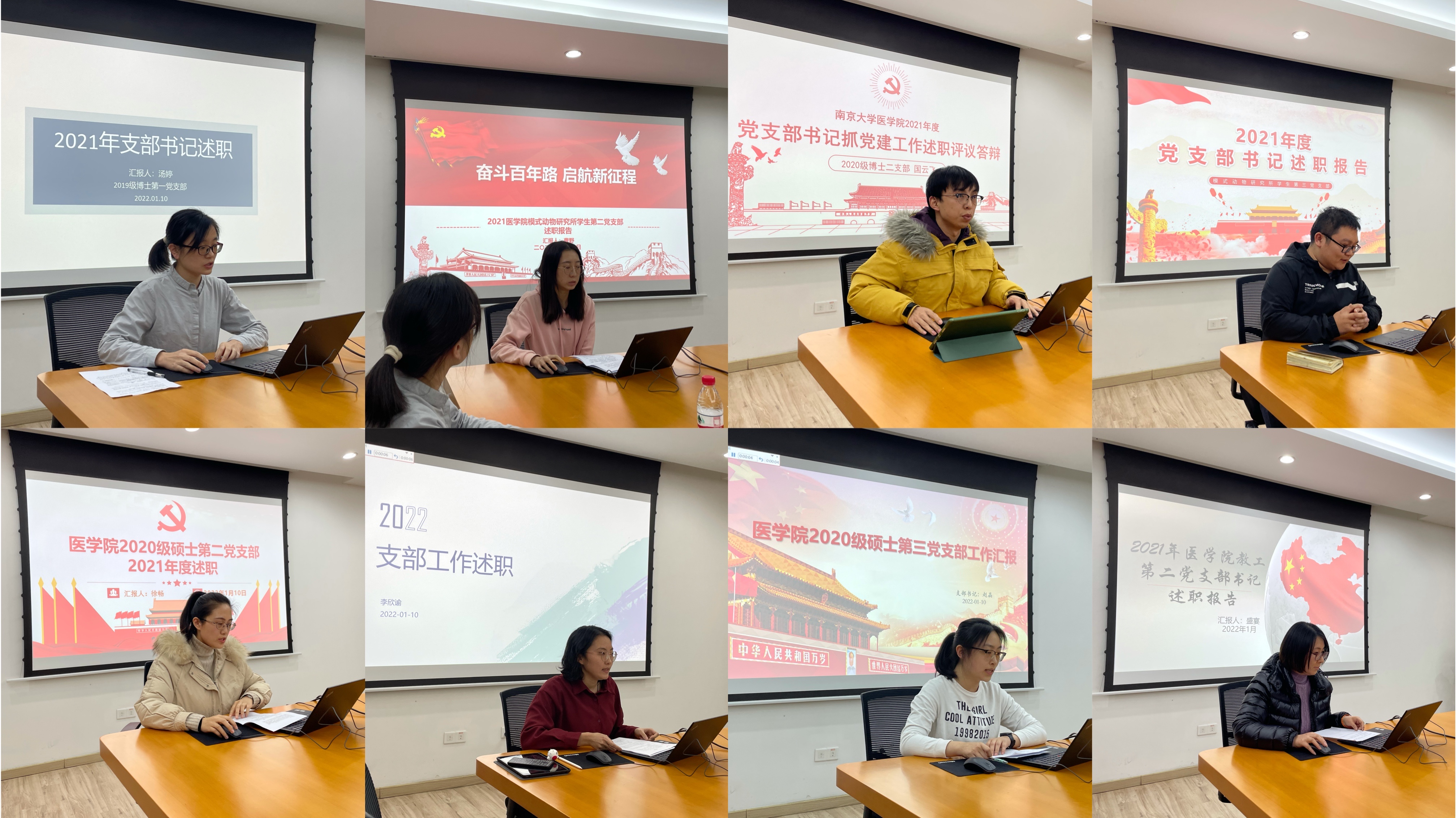 教职工党支部盛宴,硕士生党支部李欣谕、赵晶、徐畅,博士生党支部汤婷、国云飞,以及模式所党支部曹野、刘威等8位基层党支部书记分别述职。2021年,太阳成城集团tyc234cc古天乐各基层党支部在公司党委的统一领导下,学习贯彻党史学习教育总体要求,既完成好整体部署的规定动作,也结合党员身份、年龄结构积极探索支部组织形式及工作重点,在支部组织建设、组织活动等方面作出了具有医学专业特色的有益尝试。新冠疫情背景下,各党支部落实基层党积极参与支援南京市核酸检测,将“医者为仁、医者为人”的工作理念落到实处,发挥基层党支部战斗堡垒和党员先锋模范作用。