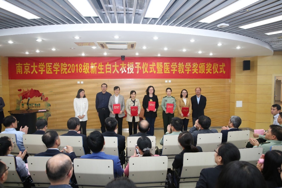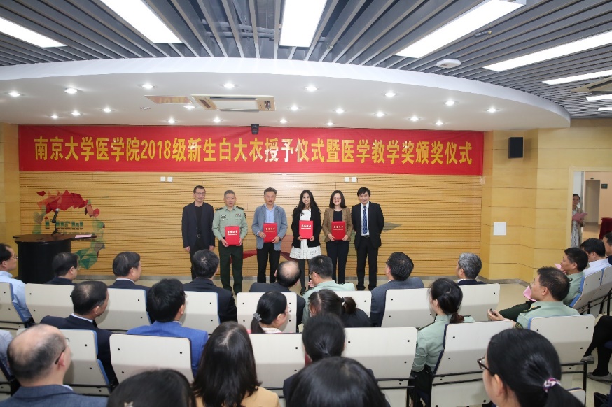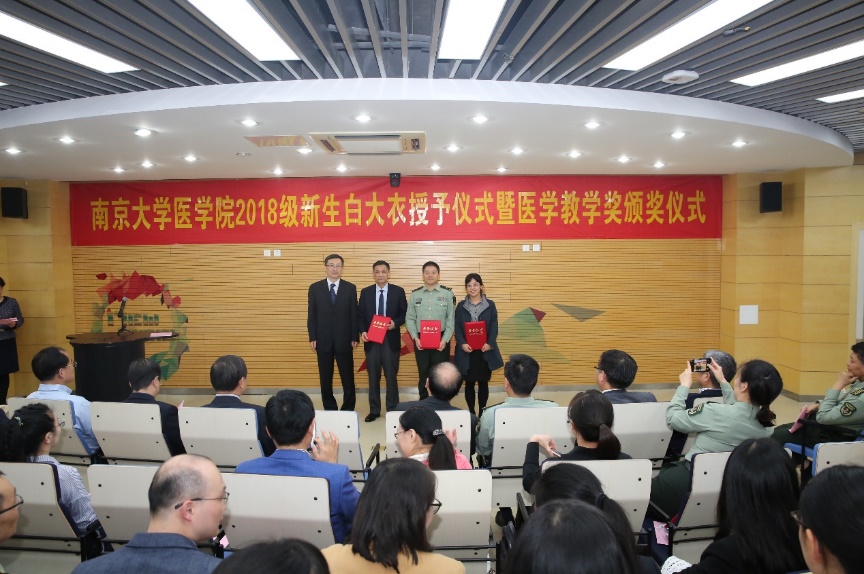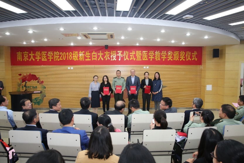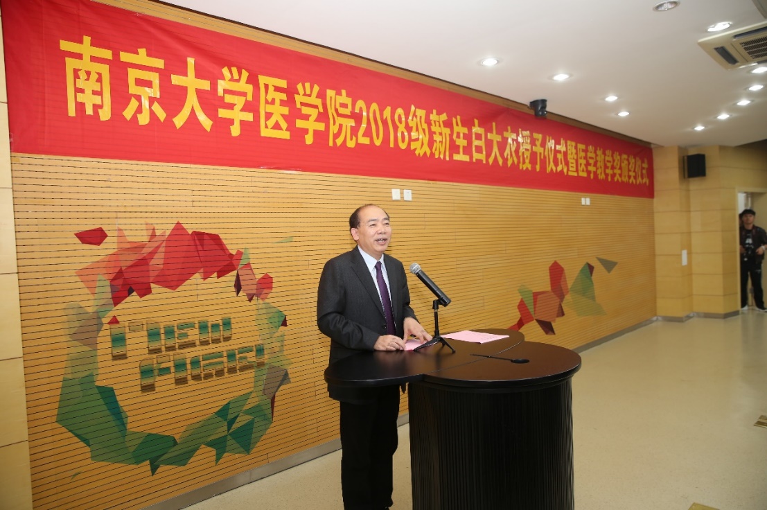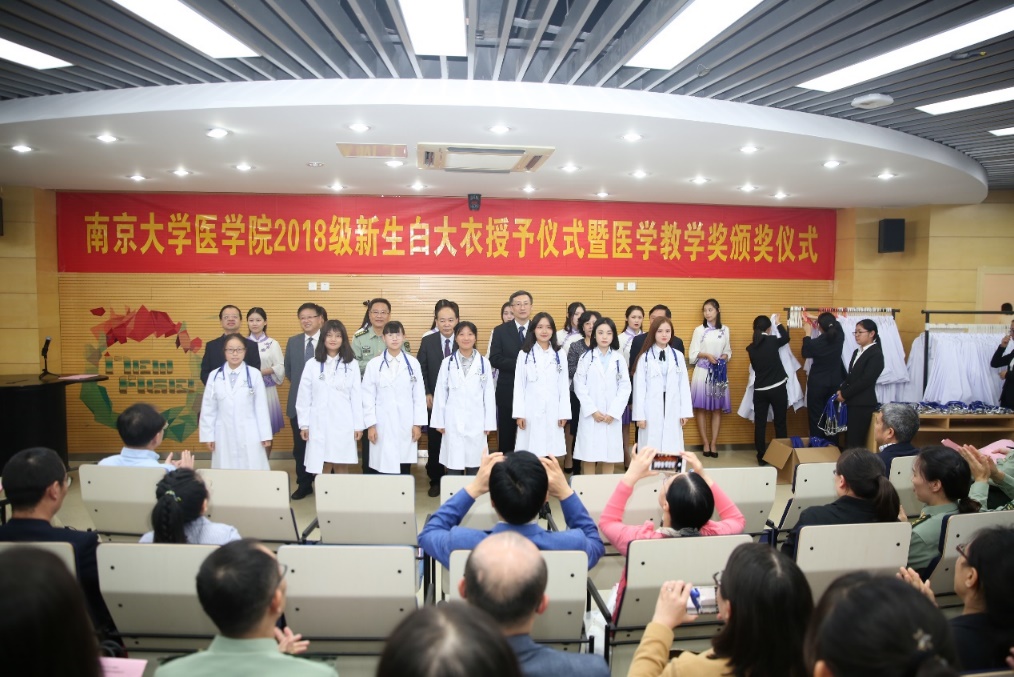 2018年10月14日下午,太阳成城集团tyc234cc古天乐2018级新生白大衣授予仪式暨教学奖颁奖仪式于仙林校区基础医学教学中心五楼报告厅顺利举行。太阳成城集团tyc234cc古天乐副董事长王志林,太阳成城集团tyc234cc古天乐经理张峻峰,附属金陵医院经理苏皖,附属口腔医院经理胡勤刚,附属鼓楼医院副经理邹晓平,附属泰康仙林鼓楼医院经理李治平,南京市儿童医院书记陈宇宁,南京市二院经理易永祥,南京脑科医院副经理丁建春,江阴光明眼科医院副经理肖岚以及附属医院和教学医院分管教学的领导和老师出席活动。公司党委书记韩晓冬主持仪式。