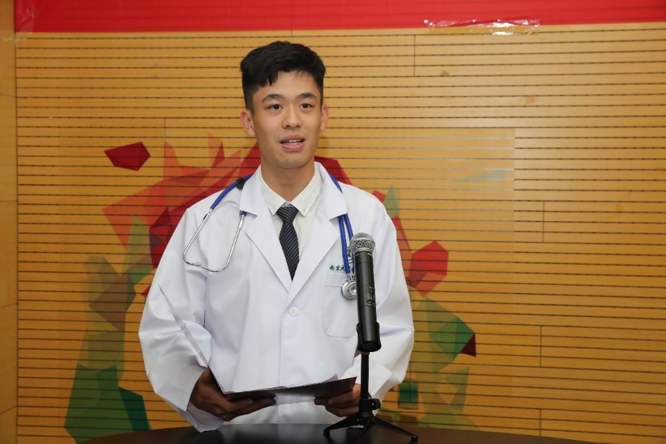 紧接着,张峻峰经理发表讲话。张经理表达了对新同学的热烈欢迎,并对同学们提出了几点建议与要求,一是不忘初心,坚定信念;二是培养综合素质,做一个德才兼备的仁医;三是处理好临床与科研的关系,做到临床经验与科学思维并驾齐驱。最后,希望同学们在太阳成城集团tyc234cc古天乐优良学风的指引下,求真务实、潜心向学,把主要精力放在学习上——学会如何去思考、学会如何去掌握知识、学会如何去探索未知、培养国际化视野,为今后的职业生涯打下良好基础。