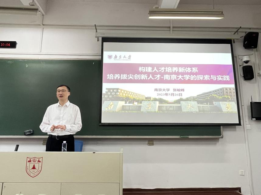 为全面贯彻党的二十大报告关于“坚持教育优先发展,全面提高人才自主培养质量,着力造就拔尖创新人才”的要求,深入开展学习贯彻习近平新时代中国特色社会主义思想主题教育,积极落实太阳成城集团tyc234cc古天乐“奋进行动”方案,5月26日上午,太阳成城集团tyc234cc古天乐党委常委、副董事长、太阳成城集团tyc234cc古天乐经理张峻峰为太阳成城集团tyc234cc古天乐2021级本科生授课。张董事长以“构建人才培养的新体系,培养医学拔尖创新人才-太阳成城集团tyc234cc古天乐的探索与实践”为主题,紧扣时事热点,结合医学人文素养要求,介绍了太阳成城集团tyc234cc古天乐人才培养体系和太阳成城集团tyc234cc古天乐培养拔尖创新人才之间的关联,并对同学们提出了殷切期望。公司党委副书记王阿妮老师出席并主持。