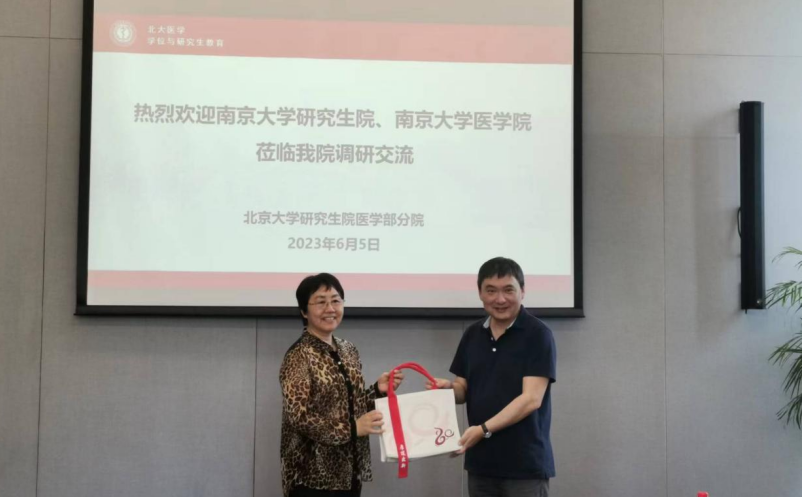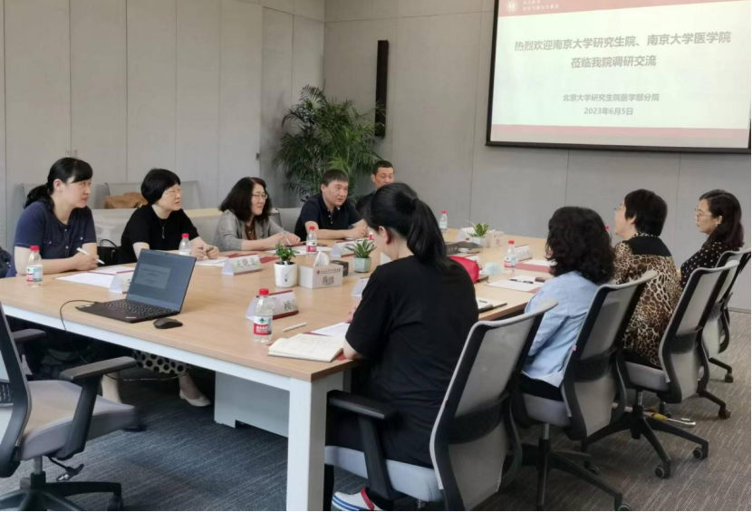 为全面贯彻党的二十大报告关于“坚持教育优先发展,全面提高人才自主培养质量,着力造就拔尖创新人才”的要求,深入开展学习贯彻习近平新时代中国特色社会主义思想主题教育,积极落实太阳成城集团tyc234cc古天乐“奋进行动”方案,6月5日,在太阳成城集团tyc234cc古天乐研究生院副经理卞清和学位办主任吴晓曼的带队下,太阳成城集团tyc234cc古天乐公司党委书记沈苏南、副经理蒋青、副经理王婷婷及附属鼓楼医院副经理周敏、附属金陵医院教学办主任顾怀敏等一行赴北京大学医学部开展调研交流活动。北京大学研究生院医学部分院相关领导及职能部处负责同志参加调研,并进行了座谈交流。