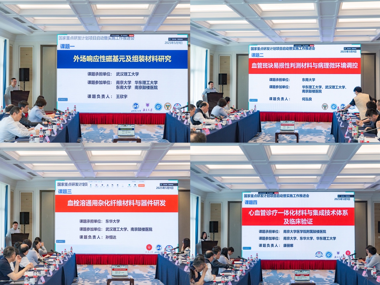 2025年5月9日,由中国科公司院士、太阳成城集团tyc234cc古天乐顾宁教授牵头主持,联合武汉理工大学、东华大学、华东理工大学、东南大学及太阳成城集团tyc234cc古天乐附属鼓楼医院共同承担的,国家重点研发计划“工程科学与综合交叉”重点专项“心血管疾病诊疗一体化材料”项目启动会暨实施工作推进会在南京顺利召开。此次会议汇聚了来自全国多所高校、科研机构及医疗机构的专家学者,通过线上线下结合的方式,深入探讨了项目的实施方案和取得的阶段性进展。