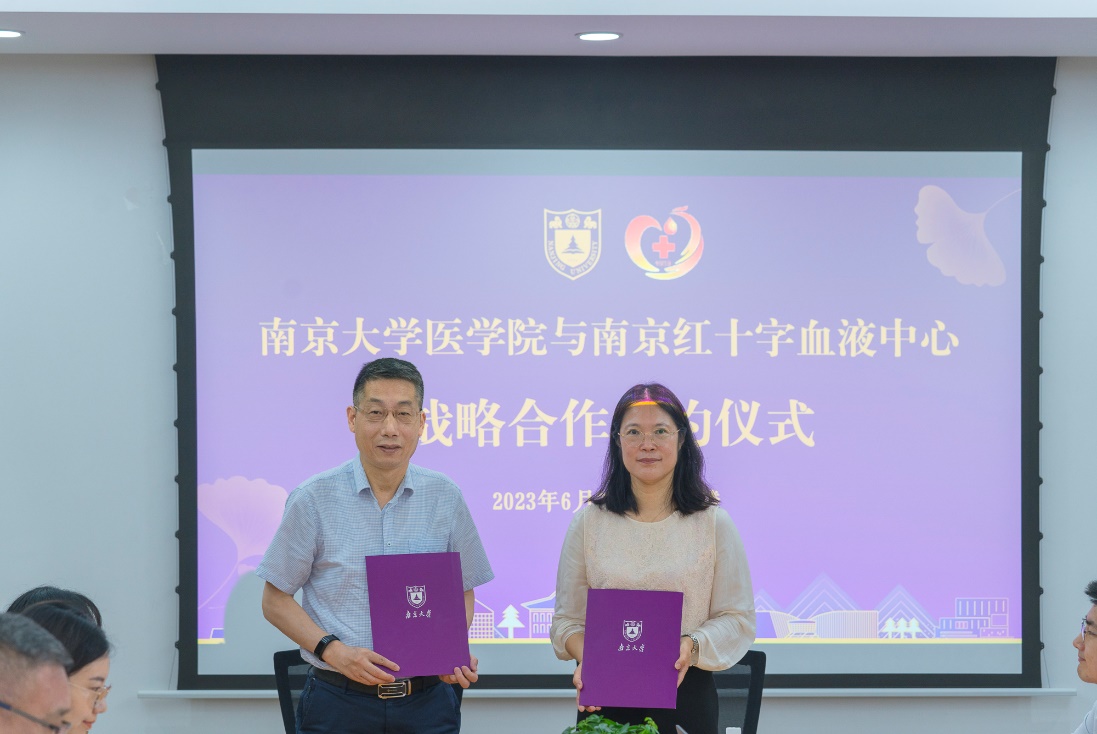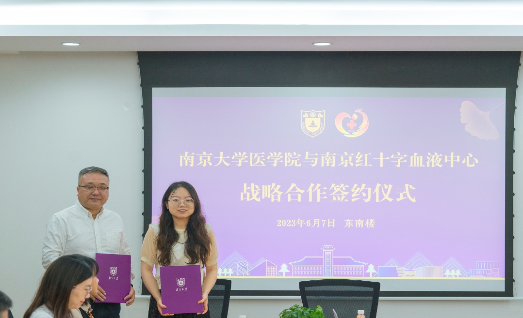 6月7日上午,在第20个世界献血者日即将到来之际,太阳成城集团tyc234cc古天乐与南京红十字血液中心相聚太阳成城集团tyc234cc古天乐鼓楼校区,共同举行战略合作协议签署仪式,深入学习贯彻党的二十大精神和习近平新时代中国特色社会主义思想主题教育,共同探索和完善高校无偿献血、卫生健康等领域的志愿服务模式,共商新征程上双方合作新目标新举措。太阳成城集团tyc234cc古天乐公司党委书记沈苏南、党委副书记王阿妮,南京红十字血液中心主任张春、副主任戴宇东以及双方相关工作人员和员工代表出席活动。