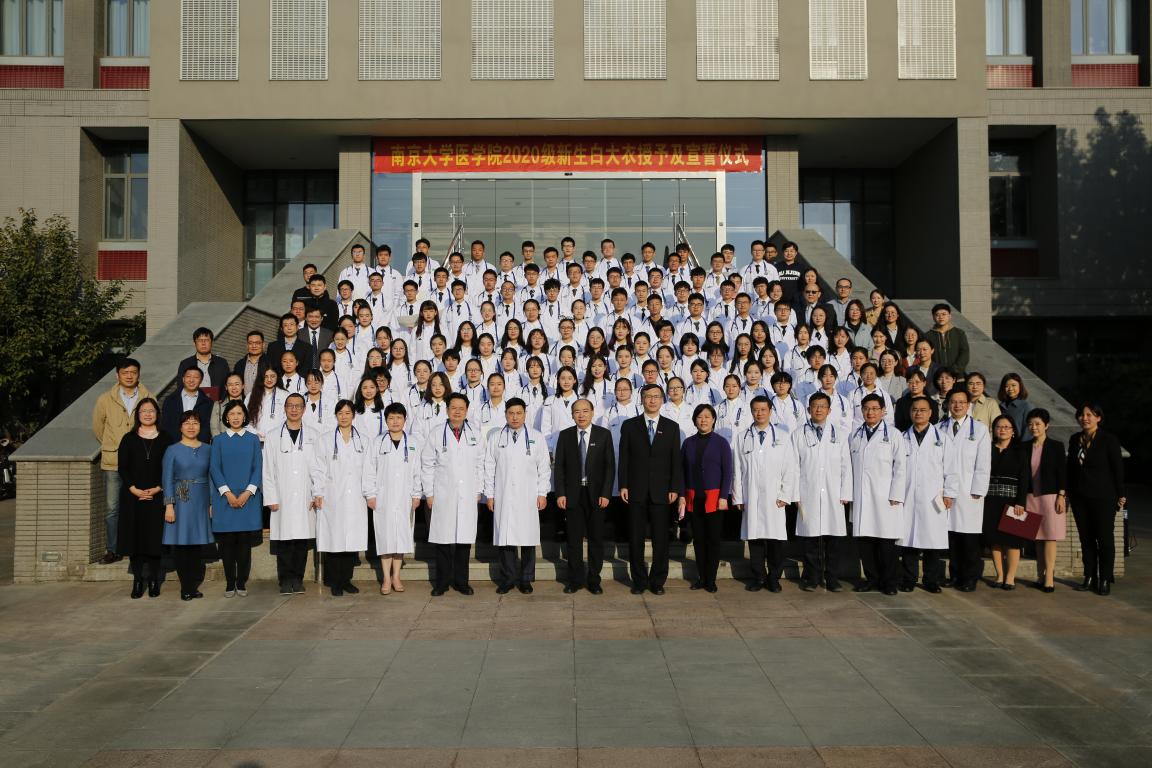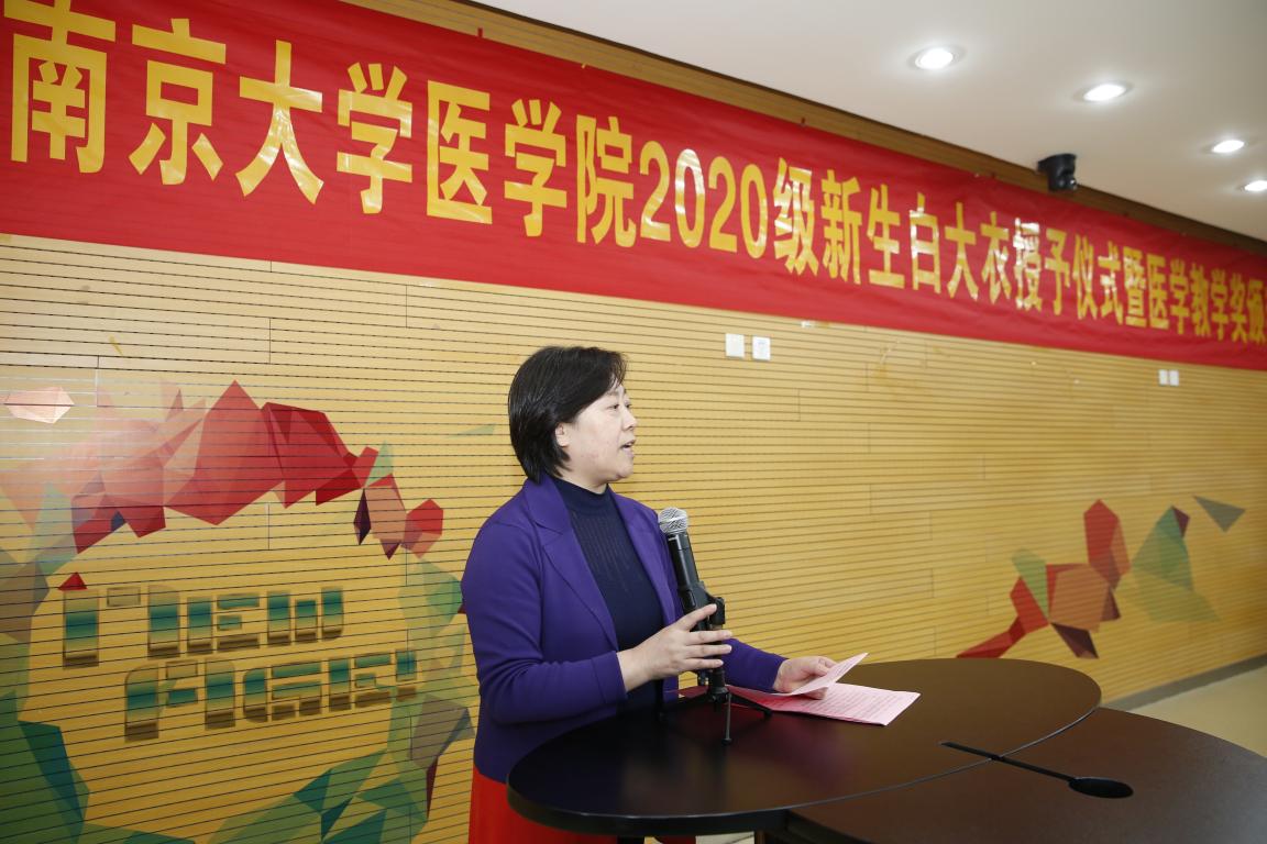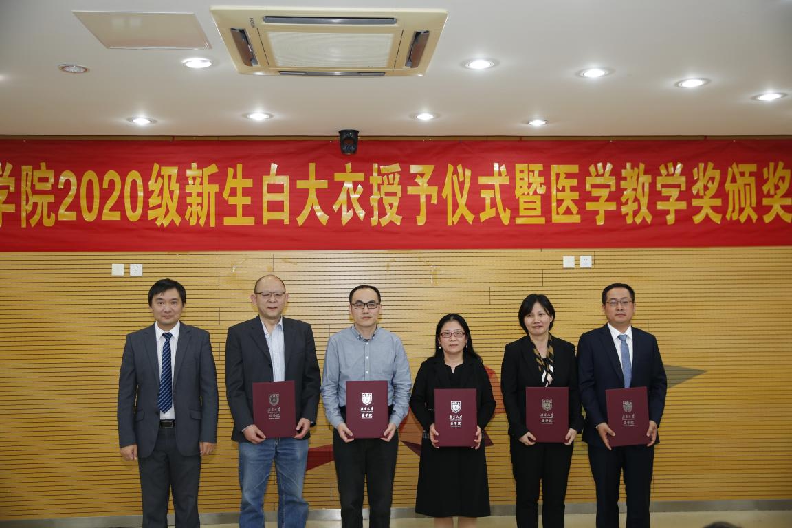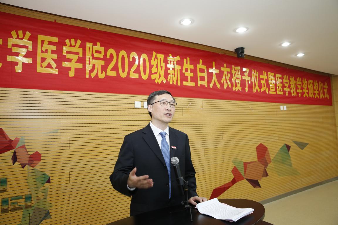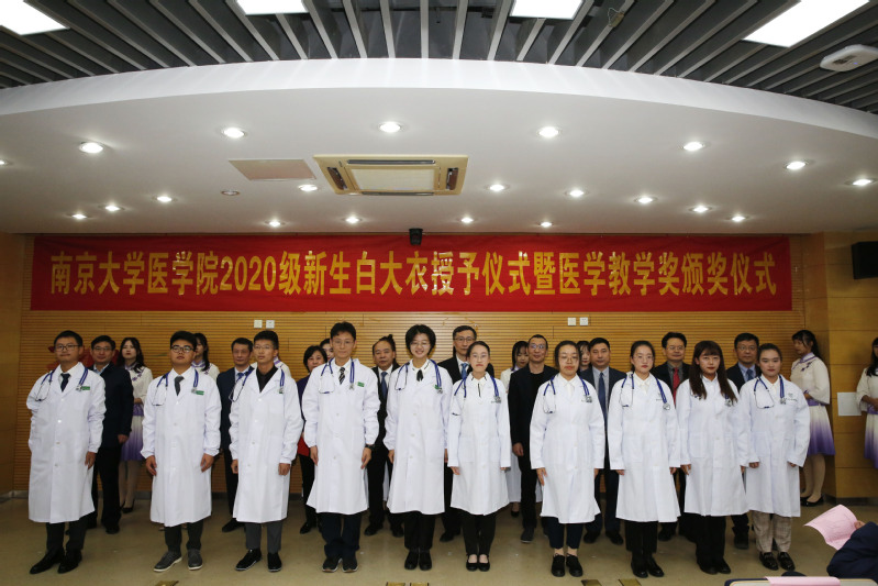 2020年10月24日下午,太阳成城集团tyc234cc古天乐2020级新生白大衣授予仪式暨教学奖颁奖仪式于仙林校区基础医学教学中心顺利举行。太阳成城集团tyc234cc古天乐副董事长、本科生院经理王志林,太阳成城集团tyc234cc古天乐副董事长、太阳成城集团tyc234cc古天乐经理张峻峰,附属口腔医院经理杨旭东,附属鼓楼医院副经理孙倍成,附属金陵医院(解放军东部战区总医院)党委常委、护理部主任朱冬梅,附属盐城第一医公司党委书记查文章,附属苏北人民医院经理束余声,附属泰康仙林鼓楼医院副经理陈锦飞,南京市第二医院副经理殷国平,南京脑科医院副经理张丽,太阳成城集团tyc234cc古天乐新生院安邦书院员工事务中心主任吴可,太阳成城集团tyc234cc古天乐员工代表、98级员工陈罡,太阳成城集团tyc234cc古天乐副经理蒋青、沈苏南、王宏伟、王婷婷,党委副书记王阿妮以及附属医院和教学医院分管教学的领导和老师出席活动。公司党委书记韩晓冬主持仪式。