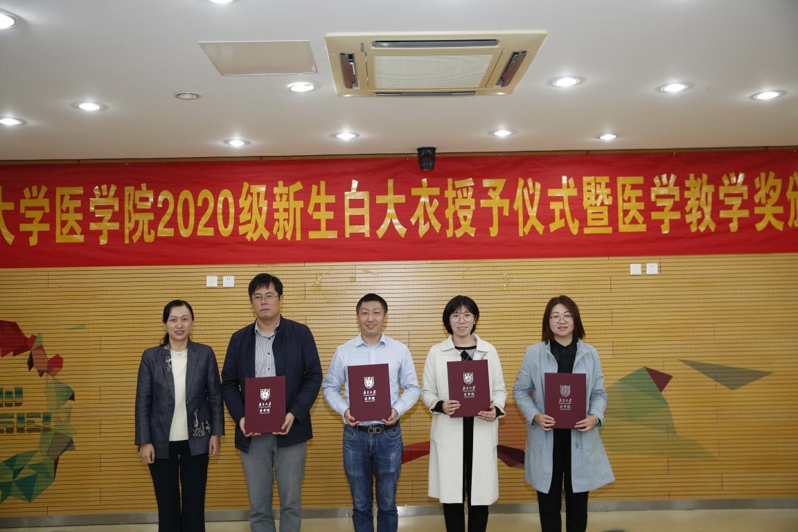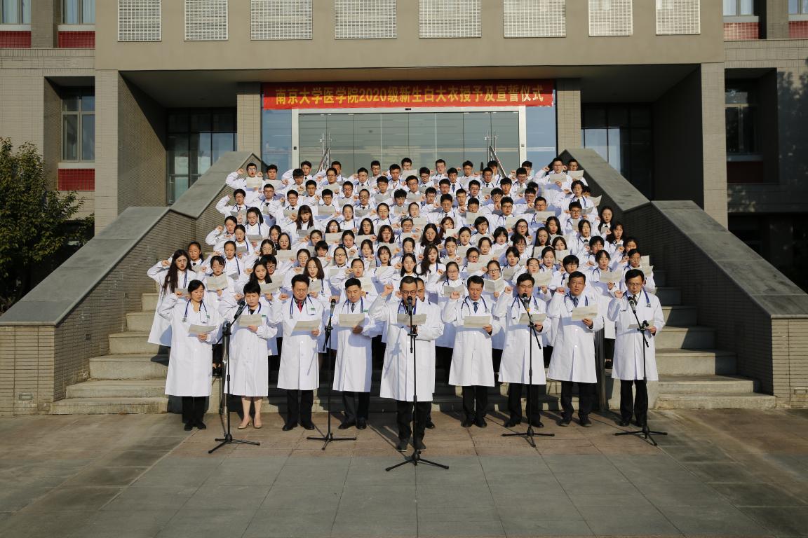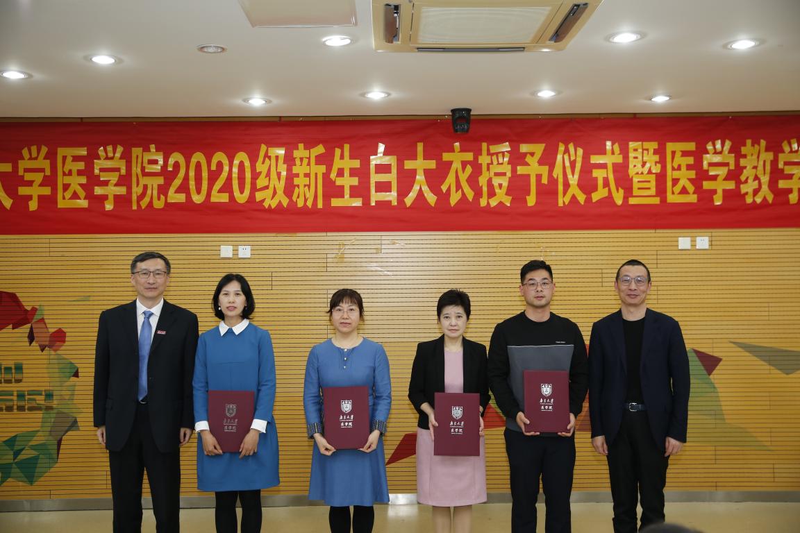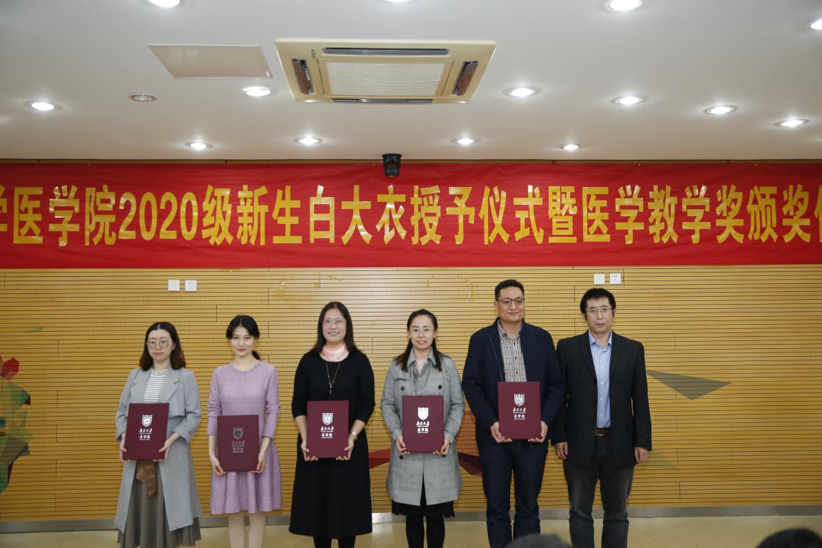 2020年10月24日下午,太阳成城集团tyc234cc古天乐2020级新生白大衣授予仪式暨教学奖颁奖仪式于仙林校区基础医学教学中心顺利举行。太阳成城集团tyc234cc古天乐副董事长、本科生院经理王志林,太阳成城集团tyc234cc古天乐副董事长、太阳成城集团tyc234cc古天乐经理张峻峰,附属口腔医院经理杨旭东,附属鼓楼医院副经理孙倍成,附属金陵医院(解放军东部战区总医院)党委常委、护理部主任朱冬梅,附属盐城第一医公司党委书记查文章,附属苏北人民医院经理束余声,附属泰康仙林鼓楼医院副经理陈锦飞,南京市第二医院副经理殷国平,南京脑科医院副经理张丽,太阳成城集团tyc234cc古天乐新生院安邦书院员工事务中心主任吴可,太阳成城集团tyc234cc古天乐员工代表、98级员工陈罡,太阳成城集团tyc234cc古天乐副经理蒋青、沈苏南、王宏伟、王婷婷,党委副书记王阿妮以及附属医院和教学医院分管教学的领导和老师出席活动。公司党委书记韩晓冬主持仪式。