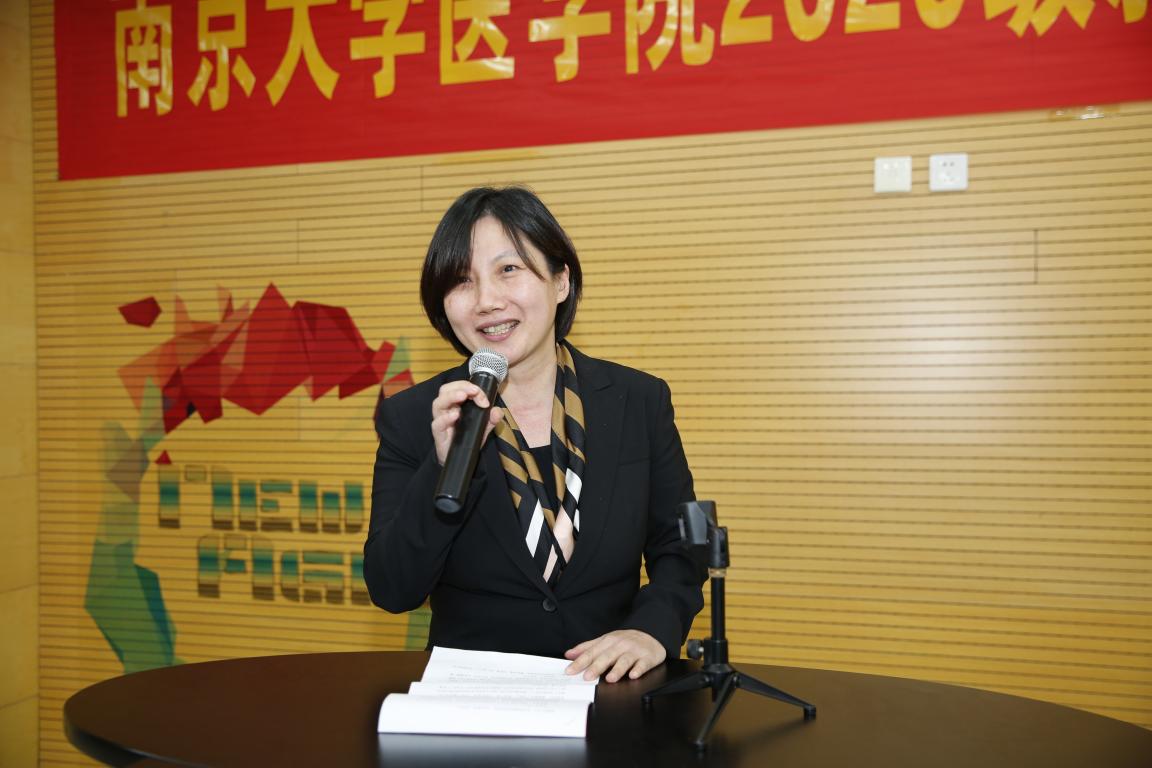 在校员工代表、2015级唐心怡同学发言。她为新生们分享了一些经验,希望同学们能够培养自主学习的习惯、把握学习的主动性;努力走出舒适圈挑战自己、发掘自己的无限可能;更希望同学们能够为了肩头的一份使命,付出一百二十分的努力,为日后成为医学的顶尖人才迈好坚实的每一步。